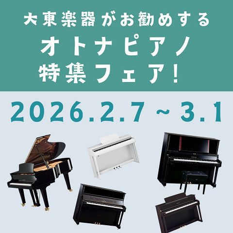 お知らせTOPICS ピアノ選びは【ヤマハピアノ専門店】へ! 楽器探そう!デジマート・楽天市場 大量掲載中! ヤマハ音楽教室 2026年春組4月・5月開講! ヤマハで音楽を始めよう 無料体験レッスン受付中 INFORMATION 2026年1月29日 新エレクトーン『ELS-03シリーズ』2/21(土)リリース2026年1月21日 第38回 ピアノフェスティバル大東楽器ファイナル 結果2026年1月8日 Yamaha Electone Festival 2025 アンサンブル演奏部門 大阪・奈良地区大会 結果 カテゴリCATEGORY 商品情報 教室情報 レンタル情報 ピアノ調律 楽器修理 イベント/講座
