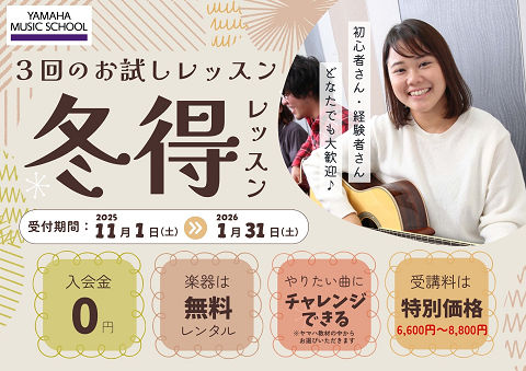 冬得レッスンは、2026年1月31日(土)までの期間中にお申し込みされた方が対象の特別レッスンです!