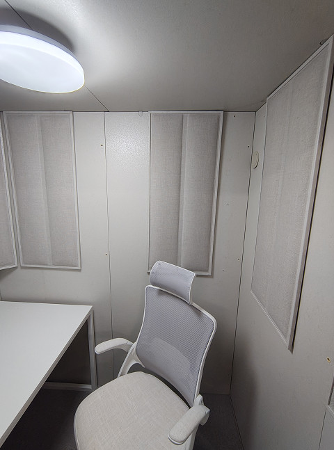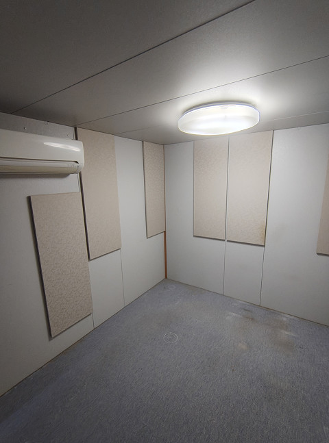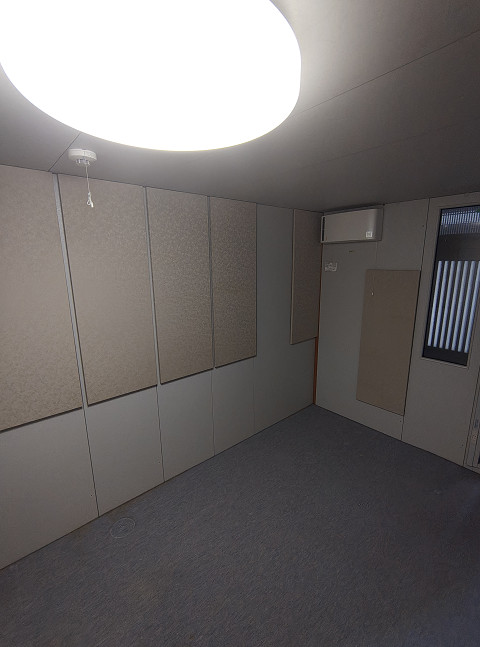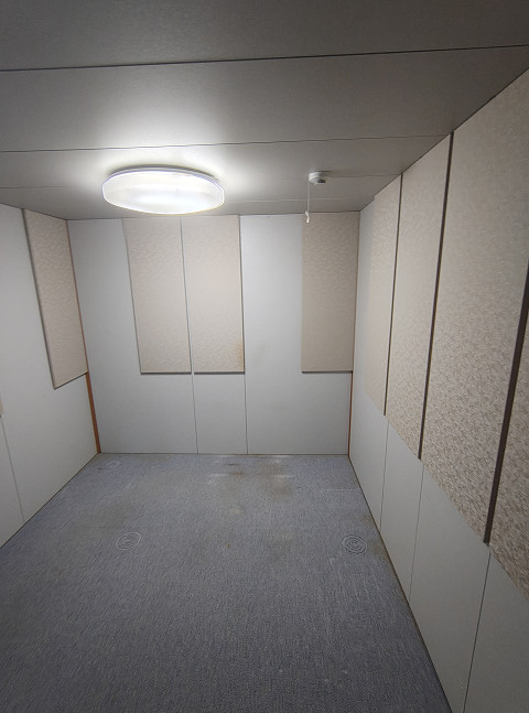 備考 絨毯新品・照明器具付無・傷、汚れあり、エアコン取付跡あり。中古市場では一番人気の1.5畳タイプです。コンパクトサイズですので設置場所も自由。響きは吸音材を採用しておりマイルドな音場で根強い人気のある響きです。DTMや動画編集・テレワーク・eスポーツ・オーディオルーム・映画・スポーツ鑑賞に最適です。汚れ、傷、仕上げ下地の糊痕が多少ございますが、遮音性能には問題ありません。