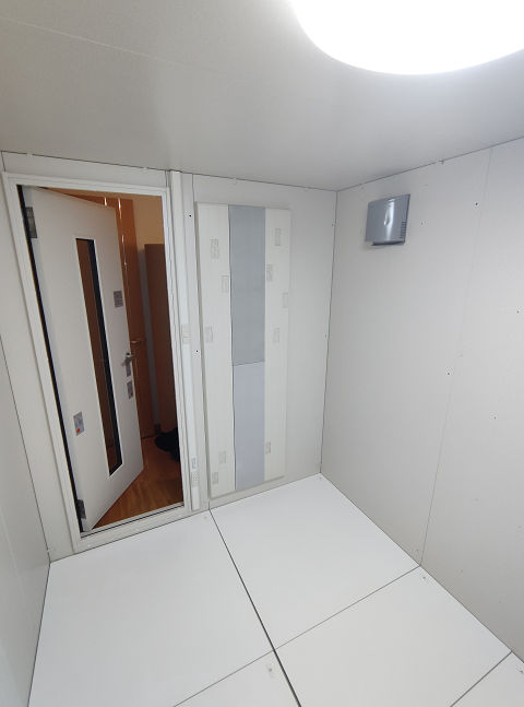 備考 新品絨毯付・照明器具の付属は無し。傷・汚れあり・エアコン穴有。現行品番の高遮音性能タイプの中古防音室です。耐震性にも優れた防音室で、安心・安全にご使用いただけます。ピアノ以外にも管楽器・弦楽器はもちろん動画配信・DTM・ゲームチャット・カラオケルーム・ホームシアター・趣味部屋・オーディオルームなど色々な用途にお勧めです。通線用の穴が1か所空いておりますのでLAN等のケーブルを引込む事も可能です。少し色やけ、湿気によるシミがある為、通常よりもお安くなっております。