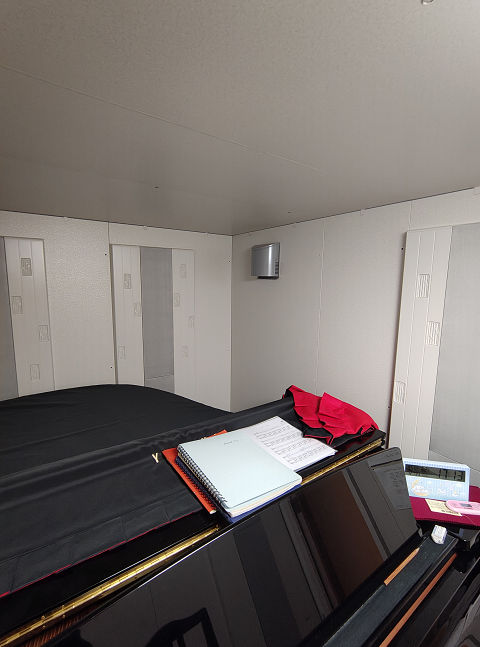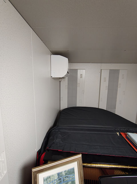 備考 絨毯新品・照明器具本体付属なし・傷、汚れあり エアコン取付跡有。内装はシンプルなホワイト系で、清潔感のある空間を演出。吸音パネルが備わっており、音の反響を抑えて快適な音環境が保たれ長時間の練習でも快適にご使用いただけます。アップライトピアノ以外にもギター、フルート、クラリネット、サックスなどの楽器やそれ以外にもDTM・動画編集・ゲーム配信など多くの用途にご使用頂けます。