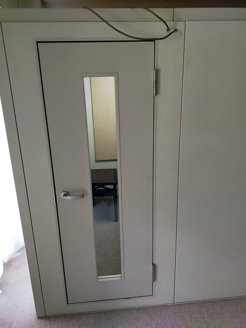 備考 絨毯新品・中古照明器具付、傷・汚れあり・エアコン穴なし、配線用穴あり。通線用の穴が1か所あり、録音機材等の配線や電源コードを引き込む事が可能です。通常よりも少し内・外装に傷、汚れ・カバーに割れがある為通常よりもお安くなっております。遮音性能に問題はございませんので、コスト重視のお客様にはお勧めの一台となっております