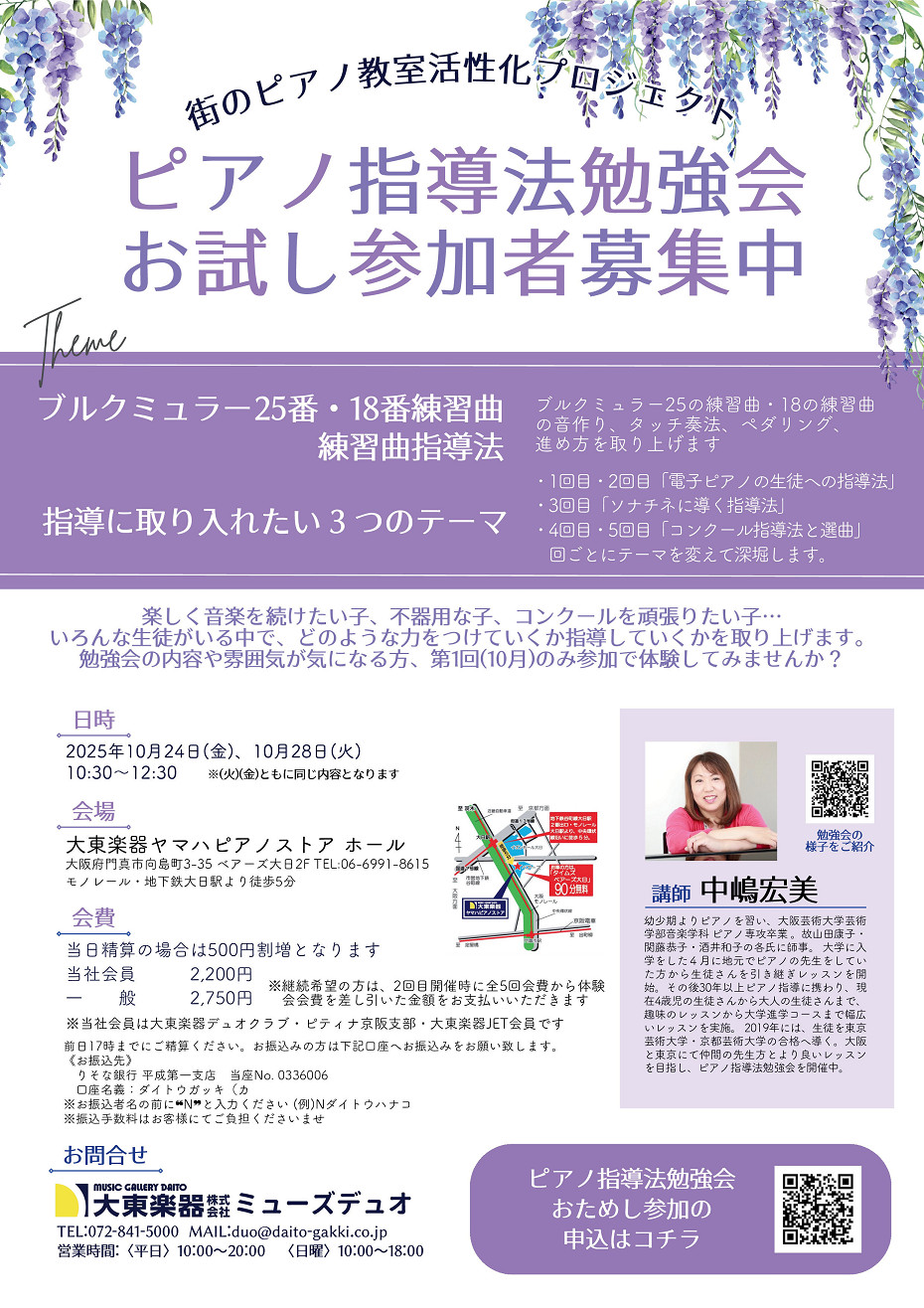 ※当日の会場は大東楽器ヤマハピアノストアとなります