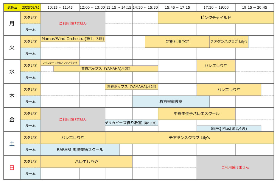 ◆◇ レンタルスペースDAITO タイムテーブル ◇◆