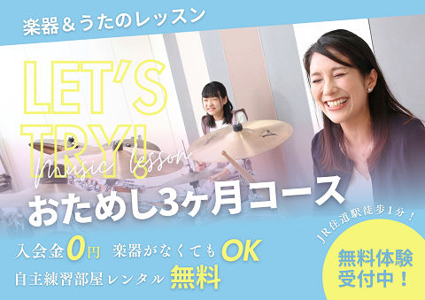 気軽に楽器を始めてみませんか?大東楽器アミューズ住道では「おためし3か月コース」のお申込み受付中♪本コースでご入会いただく前に、「どんなレッスンなのかな?」「自分に続けることはできるのかな?」といった不安を解消できます!