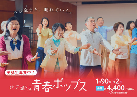 960〜80年代を中心としたポップス、歌謡曲、フォークソングなど。あの頃の思い出の名曲を、オリジナル映像を見ながら歌って踊る、新しい楽しみ方。音楽経験は必要ありません。カラオケ以上レッスン未満の感覚で、気軽に楽しむことができます。