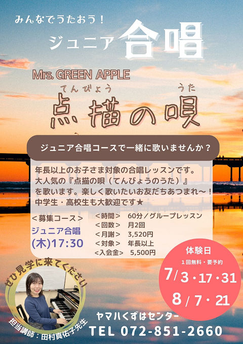グループレッスンの全募集コースの無料体験会を実施いたします。