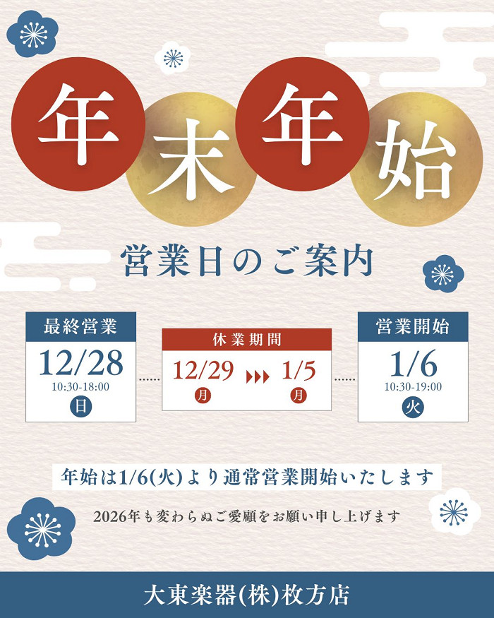 いつも大東楽器枚方店をご利用いただき、誠にありがとうございます。