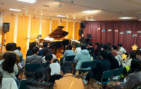 絵本の読み聞かせやアンサンブル演奏で楽しんだり、打楽器でリズムをとったりとても盛り上がりました♪