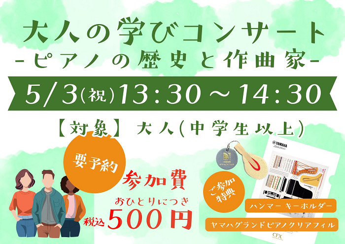 【大人のための『ピアノの学びとコンサート』】 ~ピアノの歴史と作曲家~
